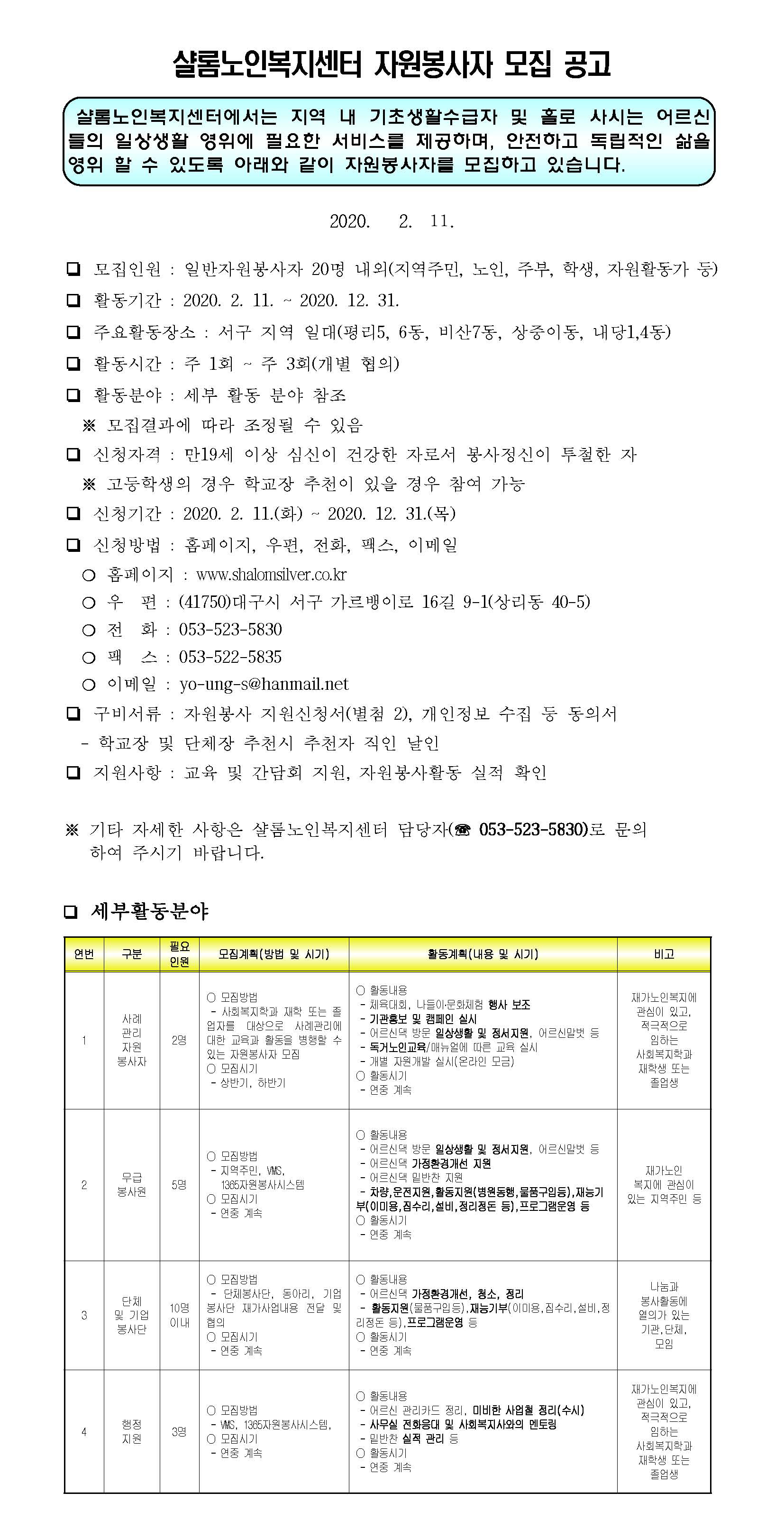 ¼£·Ò³ëÀκ¹Áö¼¾ÅÍ Àç°¡³ëÀÎÁö¿ø»ç¾÷ ÀÚ¿øºÀ»çÀÚ ¸ðÁý 2020.02.11 10:34