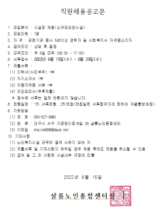 ¼£·Ò³ëÀÎÁ¾ÇÕ¼¾ÅÍ ½Ã¼³Àå °ø°³Ã¤¿ëÇÕ´Ï´Ù. 2022.06.15 11:39