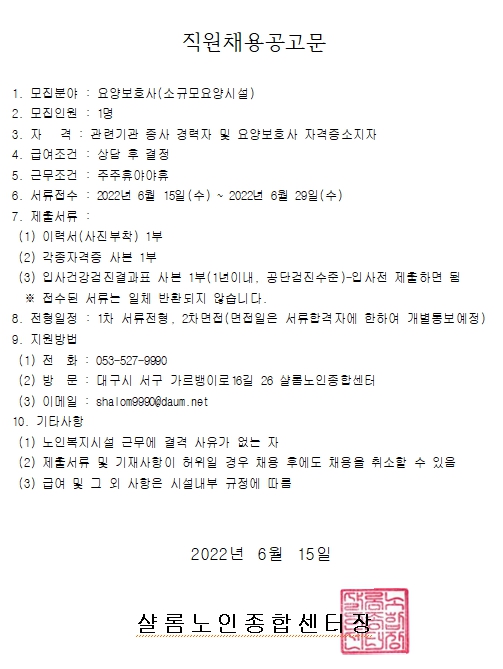 ¼£·Ò³ëÀÎÁ¾ÇÕ¼¾ÅÍ ¿ä¾çº¸È£»ç °ø°³Ã¤¿ë °øÁöÀÔ´Ï´Ù. 2022.06.15 11:42